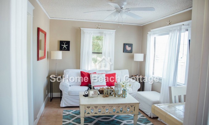 Attractive, private, bright and fun beach cottage in a tranquil setting. The perfect getaway for your extended stay. Ideally located within three short blocks of the beach, walking distance to many restaurants and amenities. The property is on a quiet street with ample parking, and the beach cottage is on the back half of the property with pleasant green space / patio and lots of natural light. Bed is a Sleep Number / Select Comfort so you can adjust it for the perfect firmness. Owners are on-site to ensure your perfect stay. Minimum 30 night stay.