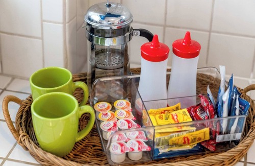 - Kitchen: Fully stocked, and offers a brand-new refrigerator, high-end induction range, dishwasher, and microwave. Coffee and tea are complimentary. The ground floor also features a Zen-like sunporch looking over the backyard and private driveway where you can park during your stay.