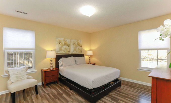 Best-rates for the North Newport News house starts from $250 per night with includes Child Friendly, Internet, Air Conditioner, Pet Friendly, Balcony/Terrace, Wellness Facilities, Fireplace/Heating, Security/Safety, Bedding/Linens, Guest Services, Laundry, Parking, TV, Kitchen, Barbecue/Outdoor Cooking StayAndPlay offers fully equipped golf villas, golf hotels, golf resorts, luxury golf cabins, and exclusive golf retreats, making it easier than ever to find your perfect golf escape — ideal for families, peaceful getaways, or pet-friendly retreats with the whole crew.
