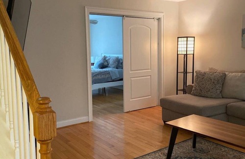 The only bedroom on the first floor. Guests in this bedroom are accessible to two bathrooms, one downstairs and the other one on the second floor.