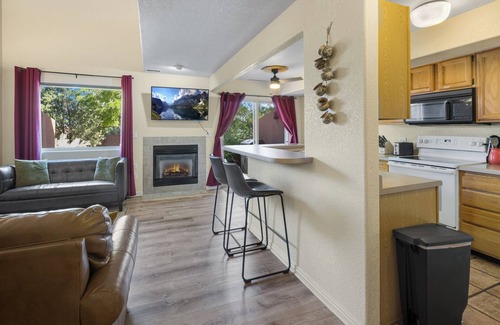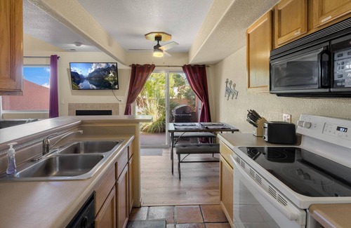 Our 2 bedroom, 2 bath townhome is perfectly nestled near the stunning red rocks and directly across from the renowned Moab Golf Course. Enjoy a tranquil stroll around the neighborhood and immerse yourself in the scenic beauty and hiking trails of Moab. Located just 4 miles south of downtown and 15 minutes from the entrance of Arches National Park, this home is your ideal base for exploring the area's natural wonders.