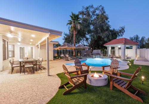18 miles from Copper Square in Phoenix, Solara - Pool & Spa - Mins to Scottsdale Quarter features accommodations with access to a sauna. The air-conditioned accommodation is 17 miles from Phoenix Convention Center. Wrigley Mansion is 11 miles from the vacation home and Deer Valley Rock Art Center is 13 miles away. The vacation home features 5 bedrooms, a fully equipped kitchen with a dishwasher and an oven, a washing machine, and 4 bathrooms with a hair dryer. Towels and bed linen are available in the vacation home. The accommodation is non-smoking. A water park is also available for guests at Solara - Pool & Spa - Mins to Scottsdale Quarter. Musical Instrument Museum is 3.6 miles from the accommodation, while OdySea Aquarium is 10 miles from the property. Scottsdale Airport is 3.7 miles away.