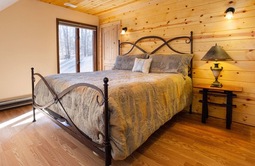 Solitude is a beautiful, spacious 5 bedroom cabin literally surrounded by nature, it features a large great room with a massive fireplace, wall of windows and a panoramic view of the wooded hillside. Gaze at the stars in the Hotspring Grandee premium hot tub or get lost in the dancing flames in the fire pit. In winter, Solitude is only around 15 minutes to Snow Trails ski resort and after a day on the slopes relax by the fire staring at the swirling snow lit by the "snow light".