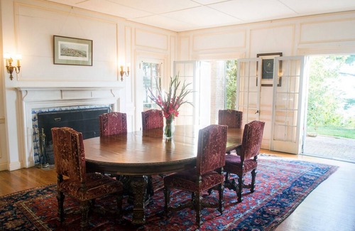 Sol’s Cliff House is an historic mansion just south of Bar Harbor, Maine, overlooking Frenchman Bay. Nestled into twelve private acres of pine and fir, this Mount Desert Island rental delivers what we think is the most magnificent view on an island of incredible views. Our step-grandfather, New York lawyer-novelist Arthur Train, commissioned the house to be built by Boston architect George Shepard in 1914, making it one of the last surviving “summer cottages” of Bar Harbor’s gilded-era golden age. It barely survived the great fire of 1947. Large ground-floor rooms connect by double doors and a great front hall. The entire east side overlooking the bay is lined with double French doors opening onto a brick terrace, affording wonderful views east across Frenchman Bay and the Porcupine Islands to the mainland and south to Egg Rock light house and the Atlantic Ocean beyond. To stay at Sol’s Cliff House is to step back in time to an era of long family summers, house parties, vigorous exercise, domestic culture-and a note of extravagance. Enjoy this special place where Acadia meets Frenchman Bay, relax in the rhythm of lobstermen making their rounds (plus the occasional cruise ship passing in the distance), and rejuvenate where the mountain and sea air mingle.
