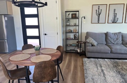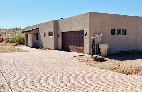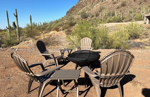 Welcome to our tranquil desert retreat nestled in the heart of the Sonoran desert. This cozy property offers a serene escape from the hustle and bustle of everyday life. You'll be greeted by the vast desert landscape, with majestic saguaro cacti & mountain vistas. Inside discover a thoughtful, modern space designed for comfort. On the private patio soak in the stillness and serenity of the desert. For adventure, explore nearby hiking trails, or embark on a day trip to nearby Sedona, Flagstaff, Prescott or Cave Creek. A private and modern 1 bedroom, 1 bathroom home with a full kitchen, stand-alone tub, sauna, sleeping for four and sweeping desert views. A space to slow down and exhale. Quiet dark starry nights and relaxing days. Maricopa trail for hiking is less than 1/4 mile away, great local restaurants and shopping nearby in Cave Creek and North Scottsdale, local cowboy culture and rodeo at the historic Roadrunner. Fishing and boating, kayaking and SUP is available at nearby Lake Pleasant or Bartlett Lake. The perfect jumping off point for all of your adventures and place to rest and recharge at days end.