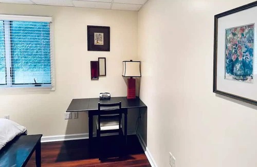 Apartment B in a modern house in Broomall, a quiet suburb. Within 3 Mins drive to two shopping centers; 20 mins to the Airport, Sports Complex, and King of Prussia Mall. It has one queen bed and two sofa beds with large windows, desks, and two closets; a spacious living/dining room; a fully equipped kitchen; a full bathroom; one parking space(call host if you need a second one). A quality place for a cozy stay for up to 4+1 guests (For more than 4 guests, please check FLAT A in the same house).