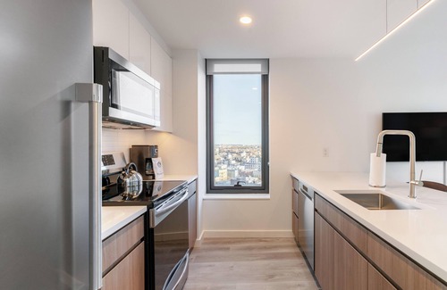 Elevate luxury living from high above in Tower 77, where exceptional sophistication is in every detail. Enjoy superb amenities including a rooftop deck with incredible views of Manhattan. At home, energy efficient lighting and top-of-the-line appliances are matched only by the abundant natural light, which creates an airy atmosphere in this open-concept one-bedroom apartment. Relax with plush bed linens, and pack away the day in the generous closet space. All Furnished Quarters apartments include 24/7 guest service.Pets are allowed in select apartments and are subject to a $500 non-refundable pet sanitation fee for one pet, $750 for two pets. Additional charges and size/breed restrictions may apply and vary by building. All pets must be approved by Furnished Quarters. Please let us know ahead of booking if you plan on traveling with a pet.