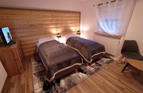 Just a 6-minute walk from Szklarska Poreba Bus Station and 0.8 miles from Izerska Railway, Sosnowa Chata - dom z prywatną sauną features accommodations in Szklarska Poręba, with a garden and barbecue facilities. This property offers access to a balcony, free private parking, and free Wifi. The villa has a children's playground and a sauna. Offering a terrace and mountain views, the villa includes 2 bedrooms, a living room, satellite flat-screen TV, an equipped kitchen, and 1 bathroom with a shower. Towels and bed linen are featured in the villa. The property has an outdoor dining area. Guests at the villa will be able to enjoy activities in and around Szklarska Poręba, like cycling, hiking, and walking tours. Guests can also warm up near the outdoor fireplace after a day of skiing. Szklarki Waterfall is 1.7 miles from Sosnowa Chata - dom z prywatną sauną, while Kamienczyka Waterfall is 1.7 miles away. Copernicus Wrocław Airport is 75 miles from the property.