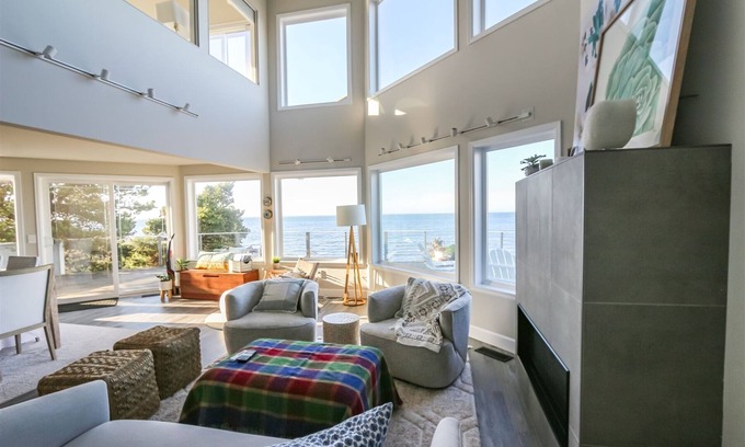 This dramatically designed two-story waterfront home is beautifully situated on 75 feet of no bank waterfront overlooking the Straits of Juan De Fuca, with direct views of the Dungeness Lighthouse, Olympic mountains, Mt. Baker, and surrounding wildlife. With 3 bedrooms and 2 bathrooms, this is the perfect oasis-like retreat for your next vacation. Bring your dog! Let the stress melt away as you sit on the spacious deck and watch nature's dance unfold. The waterfront is rich with wildlife - otters, seals, Bald eagles, herons, and so much more. You may even catch a glimpse of the Orcas playing in the distance.