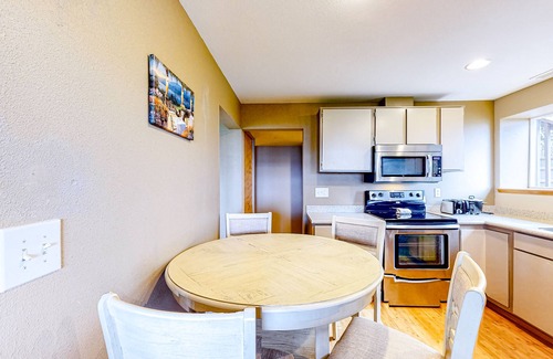 The interior is cozy, comfortable, and well-lit with generous windows. After a day of exploring, prepare a homemade dinner using stainless steel kitchen appliances, curl up by the gas fireplace with a good book, or find a movie to watch on one of two TVs - one in the living room, one in the bedroom. Central air and complimentary WiFi are provided as well.