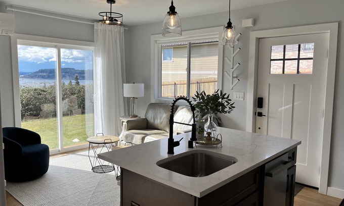 Enjoy stunning views of Puget Sound and Olympic Mtns while staying for work or play. Detached cottage w/ 1bd/1bath, in unit w/d, well equipped kitchen, private patio, parking.
