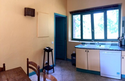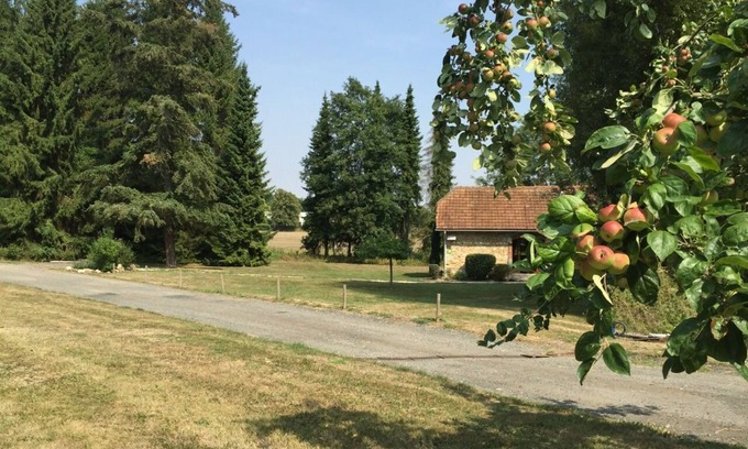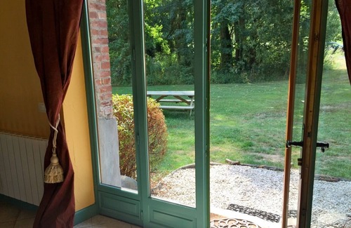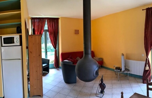 Between orchards and pastures, this cottage is on one level on a large lawn not far from a fish pond and will seduce you with its country charm and swivel fireplace.