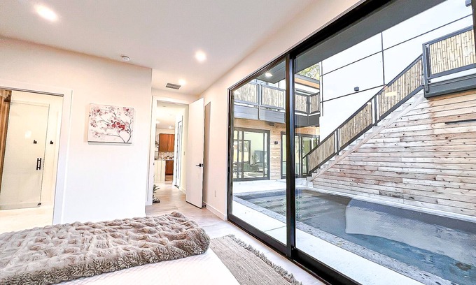 Our space is thoughtfully designed with a blend of sleek aesthetics and cozy elements. The open-concept living area boasts oversized windows and doors that flood the space with natural light, creating a warm and inviting atmosphere.