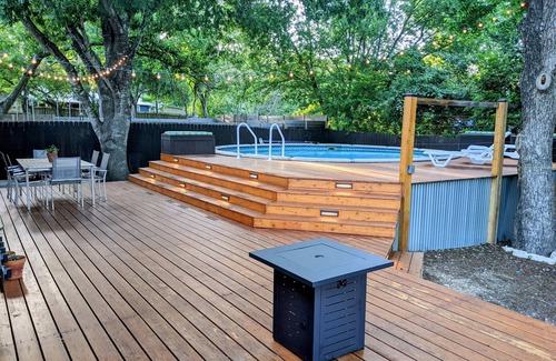 Looking for a chill escape but easy access to the city life of Austin? Look no further because our South Austin Charmer is just for you. With an amazing outdoor deck, pool, dining area and fire-pit you can just relax in our shaded oasis. Our South location is a 12-15 minute Uber to the heart of downtown. If you want to slow things down a bit, just minutes from our front door enjoy food truck parks, outdoor bars/music venues, and coffee trucks.