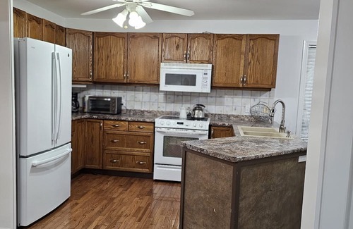 Kitchen: Refrigerator, Freezer, Stove, Dishwasher, Microwave, over the range hood and cooking supply