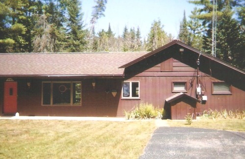 Lovely, brown, 1200 square foot one story house nestled in a quiet, secluded 3.2 acre wooded setting located 180 feet from the edge of the beautiful South Branch Au Sable River with: