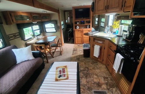 South Creekside Camper @ Heaven's Gate RV and Retreat has 1 Bedroom , 1 Bathroom, and max occupancy of 5 people. The minimum rental for this property is 1 nights, but this can change depending on the season you plan on staying. Previous guests have given good rated it, and VRBO labeled it a top-rated RV Rental because of the excellent services rendered by the owner or manager of this RV Rental, and has consistently provided great experiences for their guests. Most families or guests that use it recommend it to their friends and some of them are repeat guests. RV Rental has a friendly neighborhood, and the Muse has interesting places to visit. If you want to learn more about the RV Rental in Muse, such as places to visit and things to do nearby, you can check below to learn more.