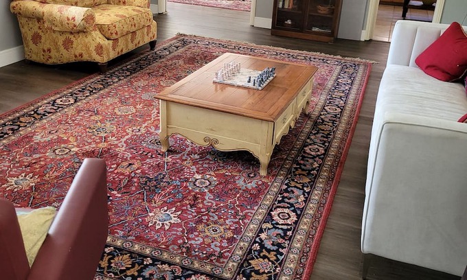 Beautiful one level home fenced yard perfect neighborhood. Most of the best restaurants within three miles. Also, multiple antique shops close. Pets must be potty trained then are very welcome. Everything you need for a relaxing stay is provided.