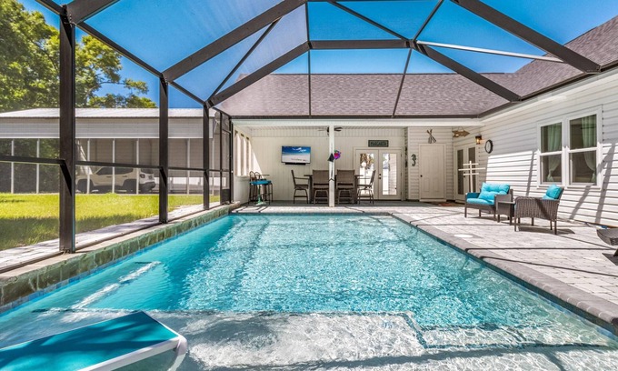 Outside, guests can enjoy a large yard and a private saltwater pool with optional heating—ideal for cooling off, lounging in the sun, or enjoying a refreshing swim.