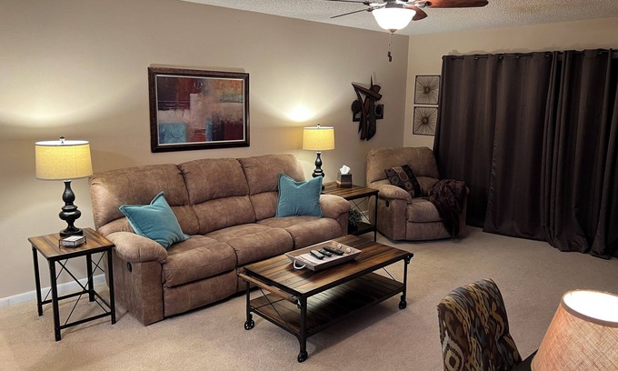 Best-rates for the Nichols condo starts from $143 per night with includes Internet, Kitchen, Laundry, Air Conditioner, Parking, Pool, TV, Bedding/Linens, Security/Safety, Wellness Facilities, Fireplace/Heating, Guest Services, Child Friendly StayAndPlay offers fully equipped golf villas, golf hotels, golf resorts, luxury golf cabins, and exclusive golf retreats, making it easier than ever to find your perfect golf escape — ideal for families, peaceful getaways, or pet-friendly retreats with the whole crew.