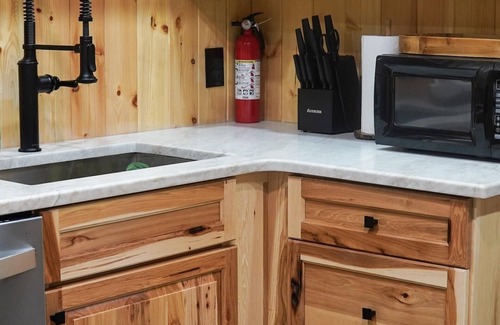 Our place is a cozy, western themed cabin. There are two bedrooms, each with a place to put your luggage on (luggage racks). There is one bathroom attached to the kitchen and master bedroom. A wash area, living room, accompanied with bar and poker table and a full kitchen.