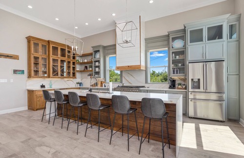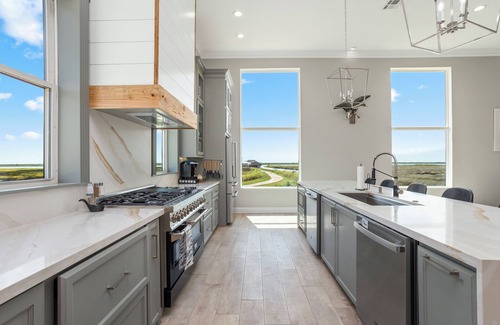Welcome to Southern Salt Lodge! Our lodge is designed to host your large group or intimate getaways for a few. Once you step in the front door, the breathtaking views of Big Lake greet you from the great room's 10ft windows. The living room is perfect for watching the big game, movie night, or relaxing by the fire. Our chef's kitchen has all the amenities needed for entertaining and a great vacation. The dining area features seating for 14 plus the island with 6 seats. The 5 bedrooms give our guests many options for any size group. The downstairs is made for fun! Enjoy the screened-in porch with a grill, green egg, bar seating, and dart board. Or relax outside at the picnic tables and around the fit pit. The lodge also has a small dock for fishing and crabbing. With all of the peace and quiet, you'll forget you are still only located 10min from restaurants, casinos, and conveniences.