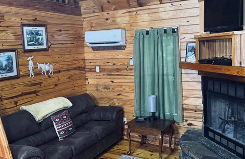 This cabin is small and compact, but really cute and roomy for its size. The bedroom downstairs has 1 queen size bed and a small loft with 2 twins. Covered front porch with a nice back deck with a Hot Tub and a wooded view. Less than 5 Minutes walk to the Ouachita River!