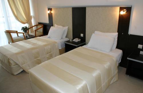 Featuring panoramic views of the Aegean Sea, the Sozer Hotel is situated across from a sandy beach in Kuşadası. It offers spacious rooms with free WiFi. The Sozer's rooms have simple wood furnishings, air conditioning, and satellite TV. They have underfloor heating system during the winter season. Some rooms have private balconies with views of Güvercin Adası Island. In the morning, the hotel serves a buffet breakfast. There is also a garden bar and an on-site Turkish restaurant with an open-air terrace. Several taverns serving fresh seafood are only a 5-minute walk away. Guests can benefit from the hotel’s dry cleaning and ironing services. Staff at the tour desk assist with car hire, buying ferry tickets to Samos, and arranging excursions to places such as Ephesus and Pamukkale. They also offer information on local attractions. The Sozer Hotel is less than 2 km from Ladies Beach and is 16 km from Ephesus. It offers 24-hour front desk service and free private on-site parking is available.
