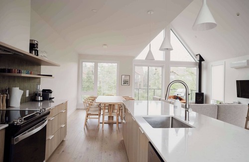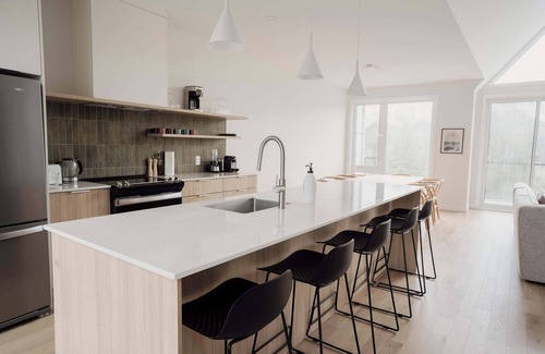 Welcome to Chalet Alphonse, a brand-new Scandinavian-style chalet designed to provide a memorable experience for families, friends, or groups. Nestled at the foot of Mont-Sainte-Anne, this spacious chalet accommodates up to 12 guests, making it ideal for nature and sports enthusiasts.