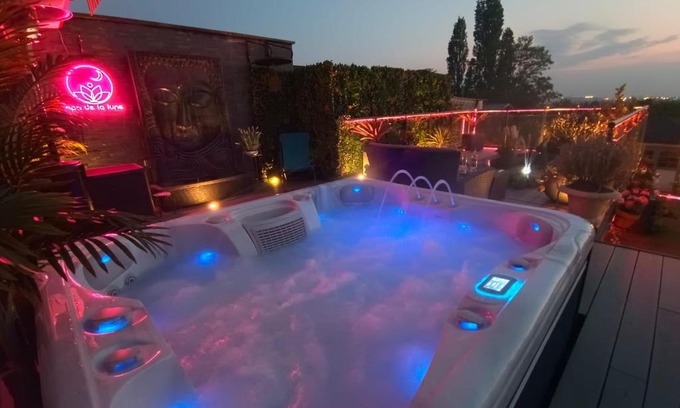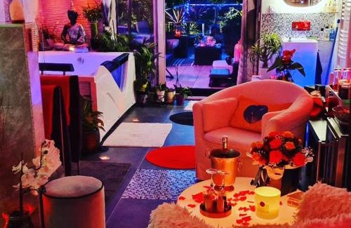 Spa de la Lune - Private love room suite with terrace and view - Air Conditioned- Double jacuzzi - Sauna - King size bed - Free WIFI - Free parking - Free breakfast - Close to CDG airport and to the North of Paris is located in Clichy-sous-Bois.