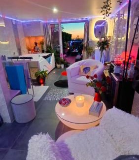 Located in Clichy-sous-Bois, 10 miles from Gare du Nord, Spa de la Lune - Private love room suite with terrace and view - Air Conditioned- Double jacuzzi - Sauna - King size bed - Free WIFI - Free parking - Free breakfast - Close to CDG airport and to the North of Paris provides accommodations with free bikes, free private parking, a fitness center and a garden. The love hotel features a spa and wellness center and free WiFi. Guests can use the sauna and the hot tub, or enjoy city views. Guest rooms at the love hotel are equipped with a seating area. Complete with a private bathroom equipped with a shower and free toiletries, all guest rooms at Spa de la Lune - Private love room suite with terrace and view - Air Conditioned- Double jacuzzi - Sauna - King size bed - Free WIFI - Free parking - Free breakfast - Close to CDG airport and to the North of Paris have a flat-screen TV and air conditioning, and some rooms come with a terrace. The rooms will provide guests with a microwave. The accommodation offers a buffet or continental breakfast. Spa de la Lune - Private love room suite with terrace and view - Air Conditioned- Double jacuzzi - Sauna - King size bed - Free WIFI - Free parking - Free breakfast - Close to CDG airport and to the North of Paris has a grill. Gare de l'Est is 10 miles from the love hotel, while Stade de France is 10 miles away. Paris - Charles De Gaulle Airport is 6.2 miles from the property.