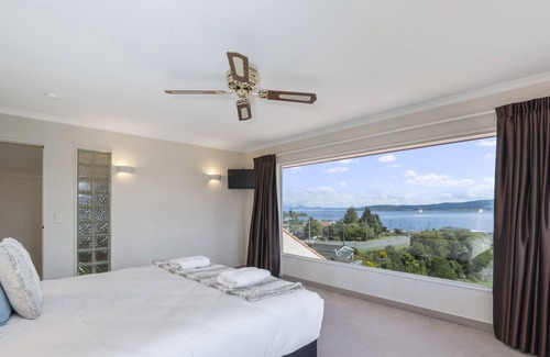 Tui Lookout is perched high above the reserve with views of Lake Taupo and the distant mountains. Spacious and inviting, this grand property has everything you need for your Taupo getaway. Less than 500 metres to the lakefront, and only a short drive to town centre.