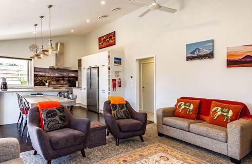 The shuttle for those wanting to do the Tongariro Crossing is a 10-minute walk from your door, and the slopes of Whakapapa are less than a 25-minute drive away. If you need to top up on supplies or fancy a meal out, you’ll find a Four Square supermarket within 10 minutes walk.