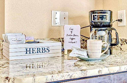There are three beautiful and creative Harry Potter inspired bedrooms (Gryffindor, Hufflepuff and Slytherin), with master on one side of the home and 2 bedrooms on the other. The kitchen is stocked with modern appliances, pots and pans, dishes, utensils and more! Complimentary coffee and tea are provided. Enjoy a cup of coffee or tea on us!