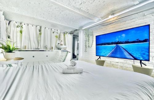 Spa privatif Balnéothérapie MYKONOS , 4 personnes Max, avec TV XXL - Espace intime | Hotel in Tourcoing