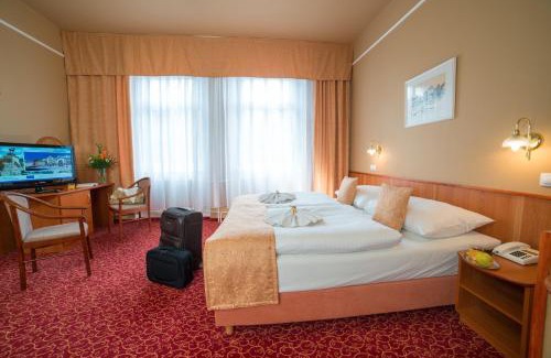 Hotel PAWLIK-AQUAFORUM with the direct access to the Aquaforum, a fitness center and a wellness is located in the center of Františkovy Lázně, right next to a park, and offers free access to a hot tub and fitness facilities. All units at Hotel PAWLIK-AQUAFORUM have views of the park or the garden, and are fitted with free WiFi, an LCD satellite TV, as well as a mini-bar. The private bathrooms come with a bath or a shower. A buffet breakfast is served each morning, and guests can enjoy traditional Czech and international cuisine in the on-site buffet restaurant. The hotel also offers a café, in the lobby. Sauna is available at a surcharge. Bicycles can be rented at the property. The Františkovy Lázně Train Station can be reached in 0.6 mi. The Seeberg Castle is 3.1 mi from the property.