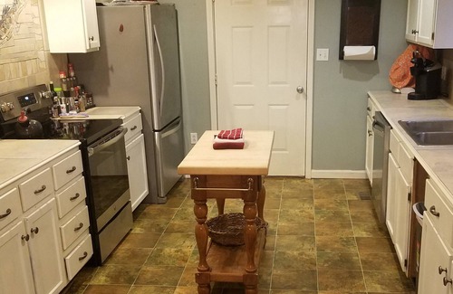 Please be aware that this home is nestled in a wooded lakeside neighborhood, so encountering bugs during nighttime outdoor activities is to be expected. Additionally, the driveway is quite steep, but there's parking available for up to three cars at the bottom, making it accessible for elderly guests. This property offers ample space for gatherings, ensuring everyone can enjoy quality time together without feeling crowded. It's the ideal place to bond with family and friends!