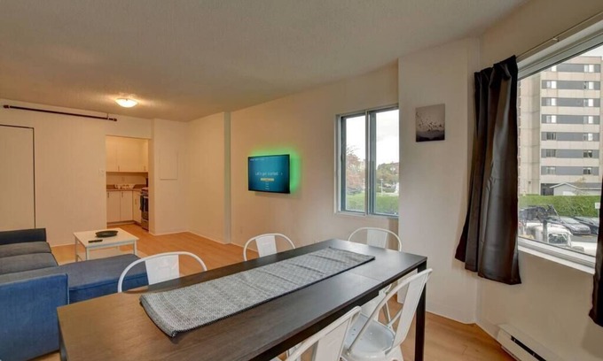 3 1/2 spacieux et entièrement équipé au centre-ville de Laval. Parfait pour contrat de travail, relocalisation, étudiants. Garde de sécurité 24h/24, gym, cinéma, vous serai confortable et en sécurité. Cuisine complète, wifi rapide et fiable parfait pour des longs séjours.