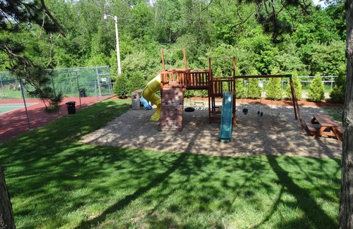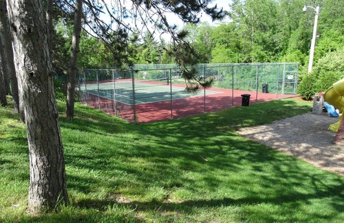 The condo facility has a salt water swimming pool on site, BBQ grills, bocci ball and tennis courts and a child's playground.