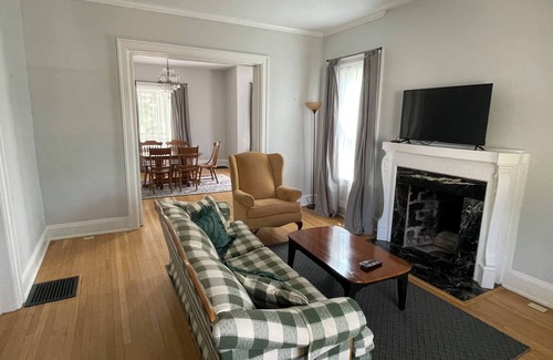 Discover the perfect blend of historic charm and modern comfort in this expansive 2-bedroom, 1-bathroom retreat, ideally located just steps from the picturesque Faurot Park in Lima, Ohio. This spacious unit, designed to comfortably accommodate up to 4 guests, offers a unique rustic aesthetic with beautifully preserved original hardwood floors, soaring 10-foot ceilings, and elegant vintage fixtures that evoke the rich history of Lima’s storied past. Thoughtful updates ensure modern convenience, including a well-equipped kitchen a recently renovated bathroom, and reliable high-speed Wi-Fi, making it an ideal choice for travelers seeking both character and functionality.