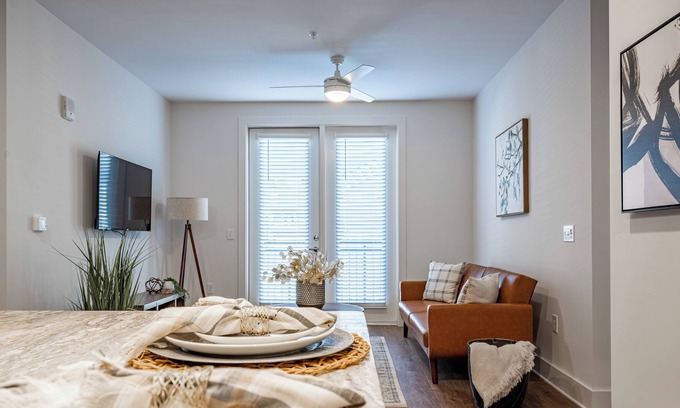 Welcome to your tranquil modern retreat! Our 2-bedroom, 2-bath furnished housing is your oasis after a long day.