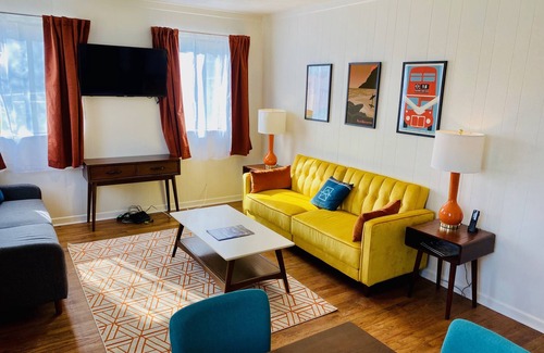 Our Two Bedroom Apartment has everything you need for a great stay in Lyons for you and your family or friends. The master bedroom is spacious with a king bed and electric fireplace to light up the ambiance. The guest bedroom has a cozy queen bed and plenty of privacy. All beds are Zoma mattresses which provide an amazing nights sleep,.