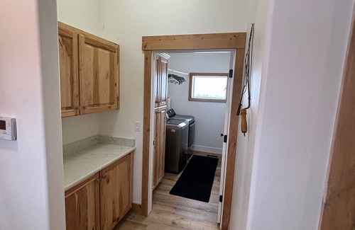 Kamas is waiting for you at this 2-bedroom apartment, located on a private and secure ranch. Wake up to beautiful mountain views and all the natural beauty of the Kamas valley, while also being just minutes from all the fun and excitement of Park City. This superb property features modern chef's kitchen with dishwasher, 1 king bed, 1 queen bed, a cozy living room with a futon, and amenities such as WiFi, on-site parking, and a laundry room. Enjoy all that Kamas has to offer when you stay at our place.