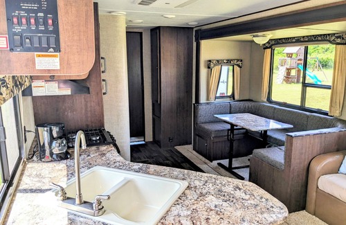 Spacious 2 Bedroom Bunkhouse RV, Farm View, Family and Dog Friendly is located in Wheatland. Spacious 2 Bedroom Bunkhouse RV, Farm View, Family and Dog Friendly provides accommodation, featuring Security/Safety, Wellness Facilities, Fireplace/Heating, among other amenities. This House features Security/Safety, Wellness Facilities, Fireplace/Heating, to make your stay a comfortable one.