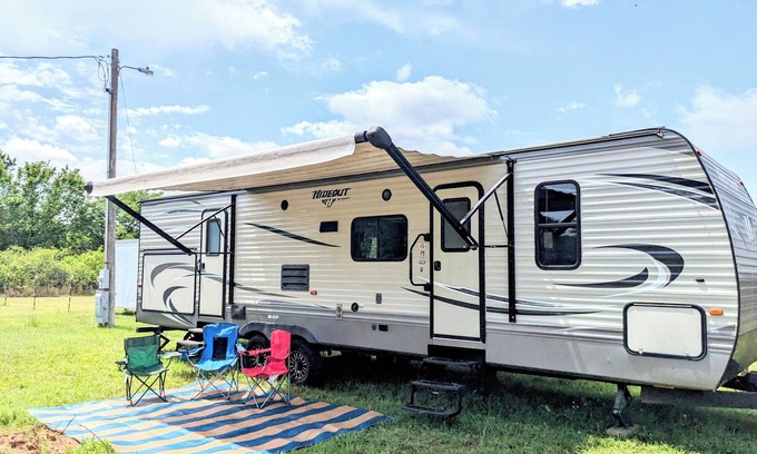 Spacious 2 Bedroom Bunkhouse RV, Farm View, Family and Dog Friendly | House in Tuttle