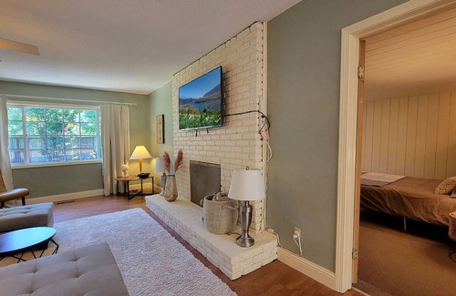 The first house features an open layout, highlighted by a generously-sized living room with a large sectional and a flat screen TV. There are three bedrooms, each furnished with a comfortable queen size bed, while an additional fourth bedroom adjacent to the living room offers both a queen size bed and a twin trundle bed. The well-equipped kitchen boasts ample space and a gas stove, perfect for culinary enthusiasts. For dining, a large table in the dining room accommodates up to 10 guests, and an additional table on the outdoor porch creates a delightful setting for al fresco meals. Unwind in the evening with a luxurious soak in the large soaking tub found in one of the bathrooms. Completing the picture, the property boasts a beautifully landscaped front yard and backyard, complete with a deck that overlooks the scenic Rogue River. Plus, we happily welcome pets, ensuring everyone can enjoy a memorable vacation.