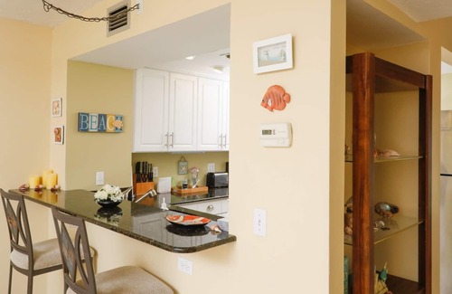This waterfront condo has 2 Bedrooms and 1 fully equipped Bath, a great-room with dining area and a beautiful kitchen with granite counter tops and bar. The two bedrooms have each a queen sized bed. Other amenities include a washer and dryer which is accessible from the kitchen.