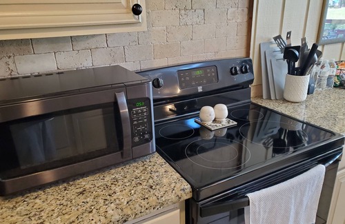 This 1500 sq. ft. home is all on one level (2 steps down to master bedroom w/ King Size bed). 2nd bedroom has a Queen bed and 3rd bedroom has 2 singles. Sleep up to 6. All hardwood and tile floors, high ceilings, updated kitchen, newer appliances and includes WIFI. Pets welcome on a case by case basis (*). Located in gated country club community on Lake Conroe w/ swimming, Tennis, Golf. and a full service club house. Close to many businesses/restaurants. Very convenient for those extended business meetings or longer term stays. Vacations are perfect here for fun, excitement or just plain relaxation.
