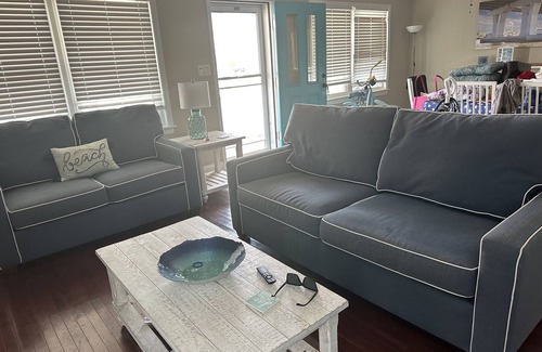 In order to ensure our guests have the best experience and fully relax and enjoy their vacation we have included 8 beach tags, each room has queen size beds, gas cooking, microwave, Cuisinart coffee maker (full pot and single maker), Cuisinart Toaster Oven, brand new full size stackable washer and dryer. Large kitchen with plenty of storage space open to the dining room and family room allowing for great openness for all your entertaining needs. Large porch with a propane tank grill. Parking spaces in the back of the home, as well as, additional street parking.