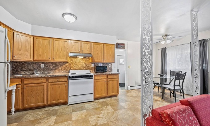 Prepare a home-cooked meal in the kitchen, stocked with a stovetop, a microwave, and cookware. Other amenities at this 3-bedroom, 1-bathroom rental include bed sheets, an ironing board, and heating.